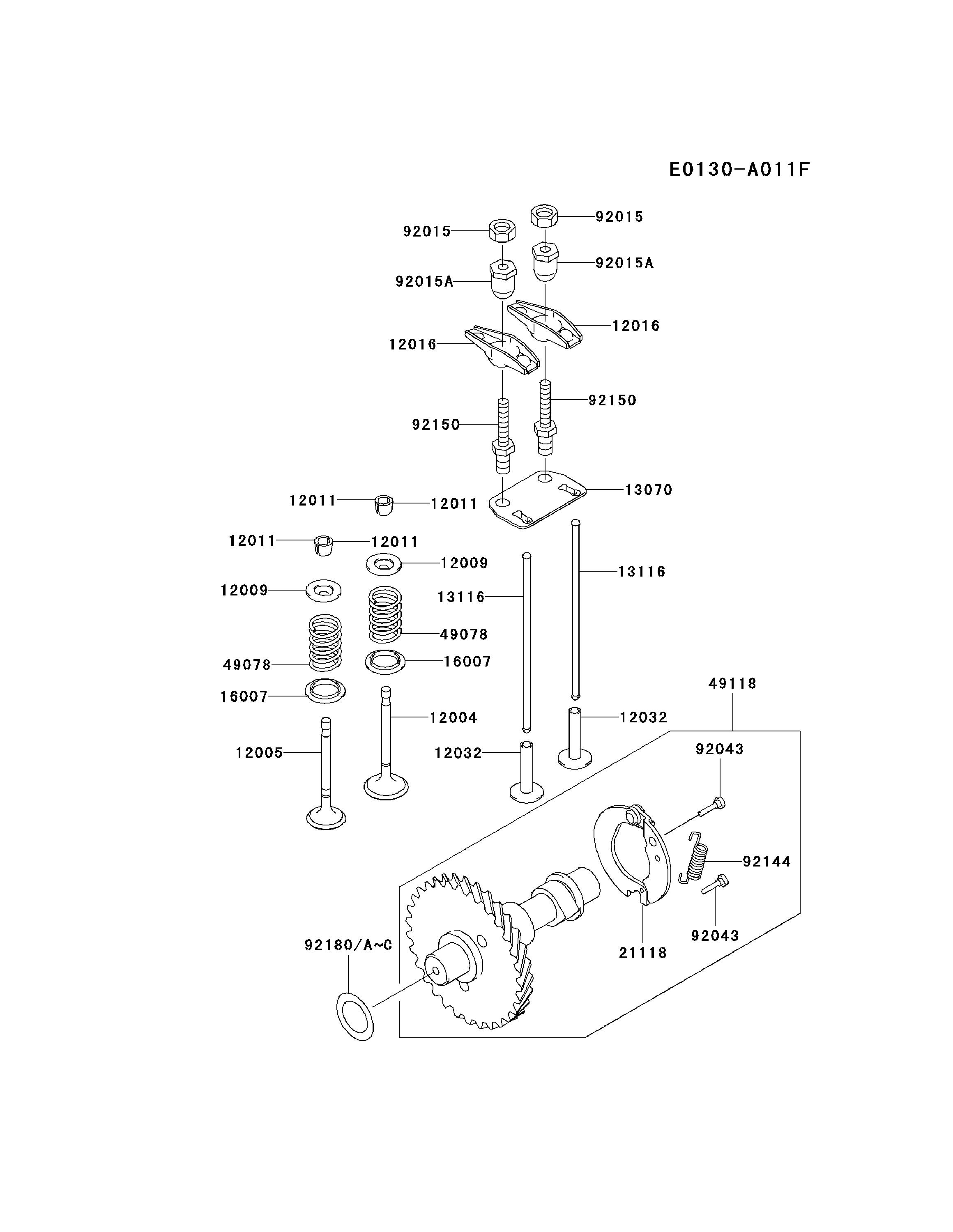 Hier finden Sie alle Ersatzteile von Kawasaki Wasserpumpe HF080A-AS01 (KWT30A) aus der Zeichnung Ventile/Nockenwelle: