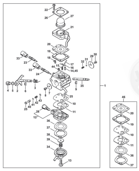 Hier finden Sie alle Ersatzteile von Stihl Kombi- MultiSystem KM 100 der Zeichnungsgruppe Vergaser C1Q-S72: