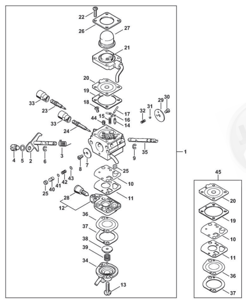 Hier finden Sie alle Ersatzteile von Stihl Kombi- MultiSystem KM 100 der Zeichnungsgruppe Vergaser C1Q-S81: