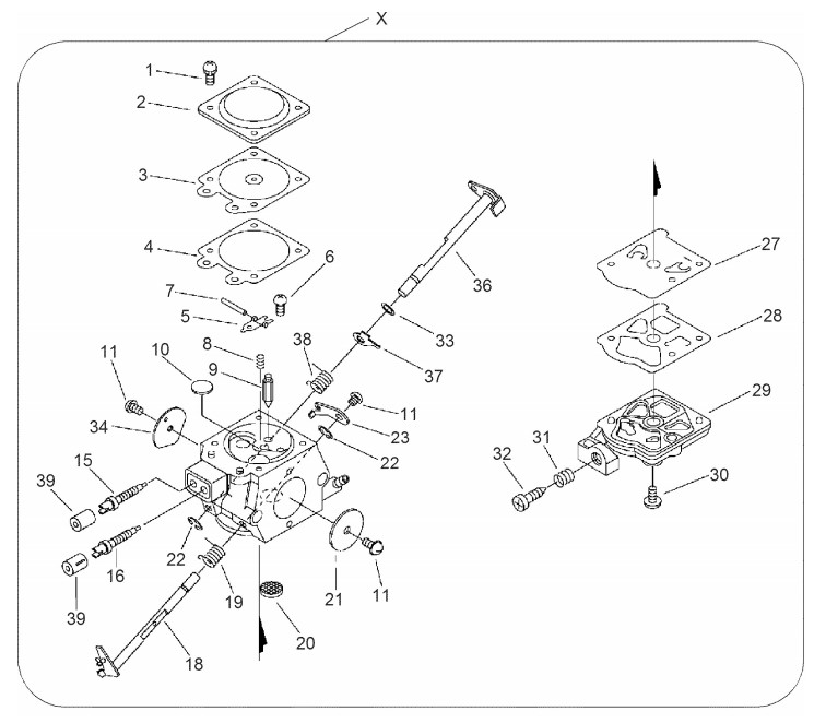 Zeichnung von ECHO Motorsägen CS-350TES CS-350TES bis S.-Nr.: 36035770 Vergaser WT-698A: