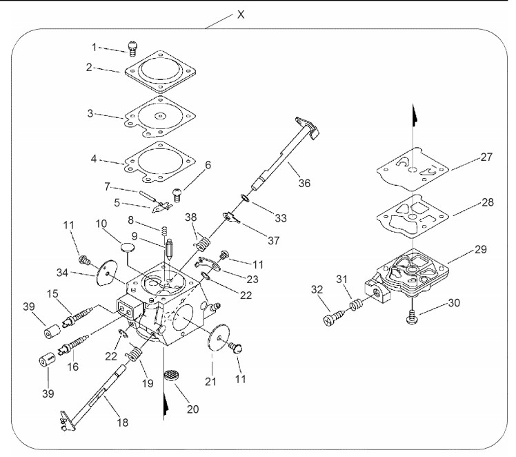 Zeichnung von ECHO Motorsägen CS-350TES CS-350TES bis S.-Nr.: 36042540 Vergaser WT-698B: