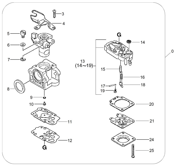 Zeichnung von ECHO Motorsensen SRM-350ESU SRM-350ESU bis S.-Nr.: 36014620 Vergaser WYJ-373(A):