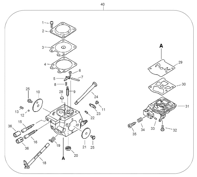 Zeichnung von ECHO Motorsägen CS-3500 Vergaser ab S.-Nr.: 36000001: