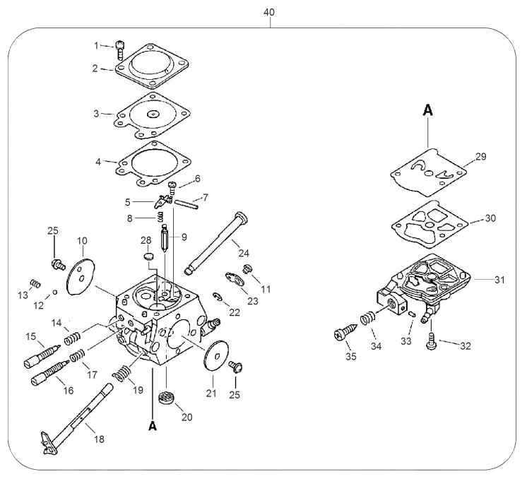 Zeichnung von ECHO Motorsägen CS-3500 Vergaser bis S.-Nr.: 03317: