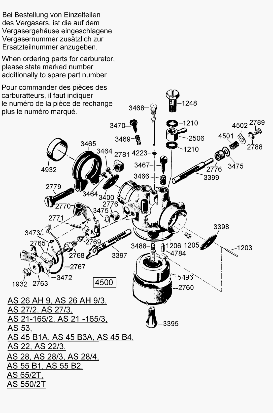 Hier finden Sie alle Ersatzteile von AS-Motor Profi-Rasenmäher AS 530/2T MK ab FNr. 019409060001 aus dem Zeichnungsblatt Vergaser: