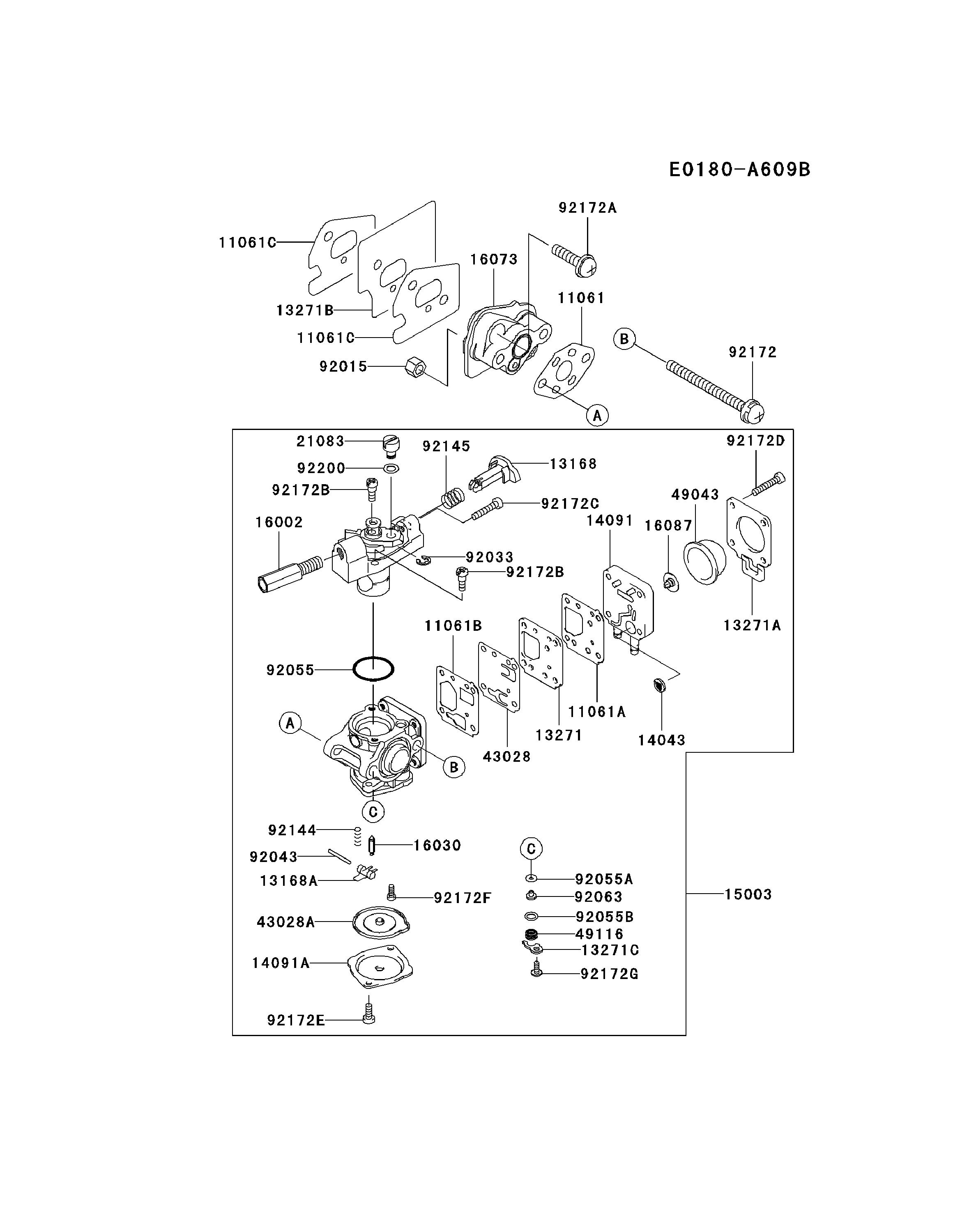 Hier finden Sie alle Ersatzteile von Kawasaki Freischneider HA027G-AS50 (KBH27A) aus der Zeichnung Vergaser: