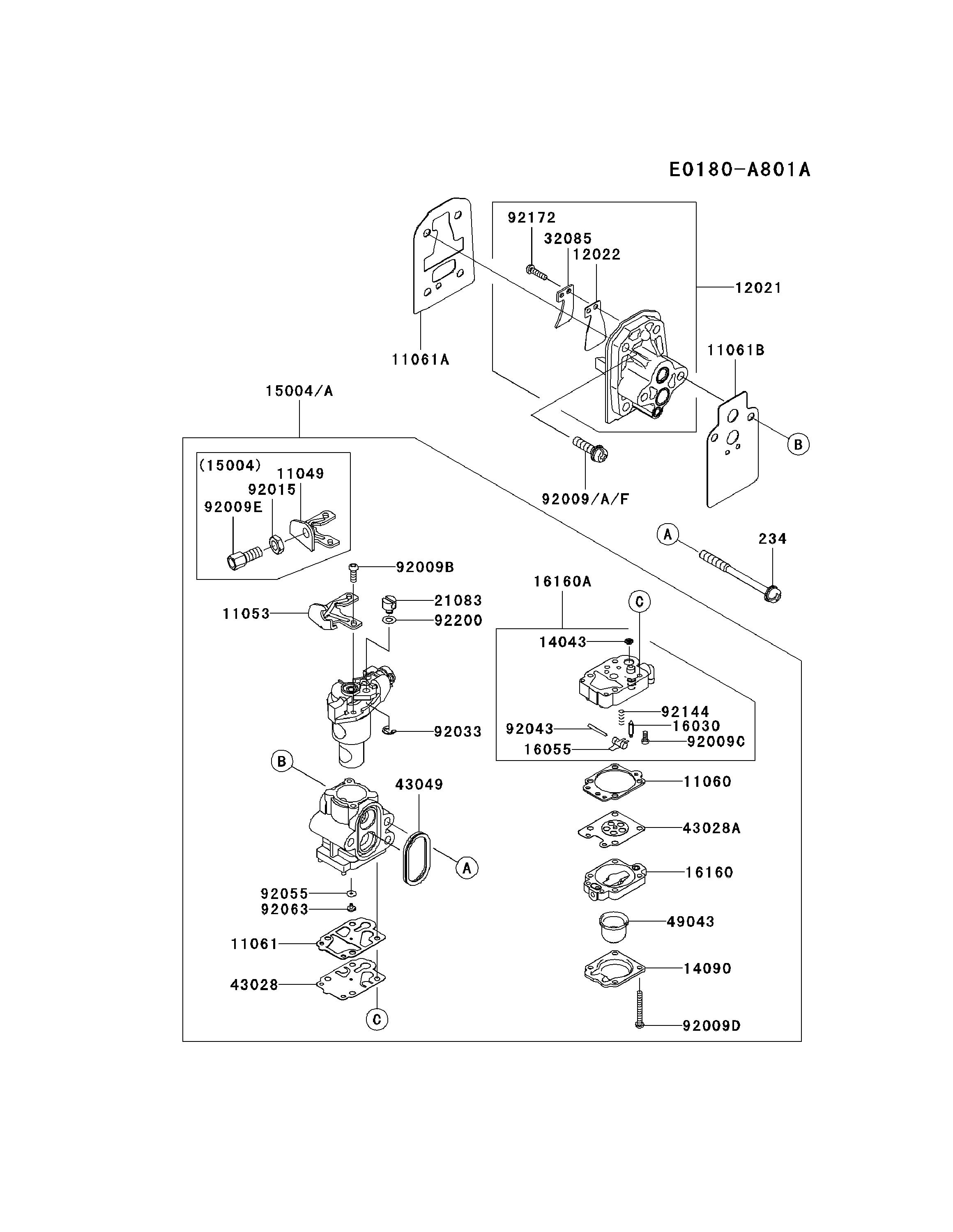 Hier finden Sie alle Ersatzteile von Kawasaki Freischneider HA027T-BS50 (KBH27B) aus der Zeichnung Vergaser: