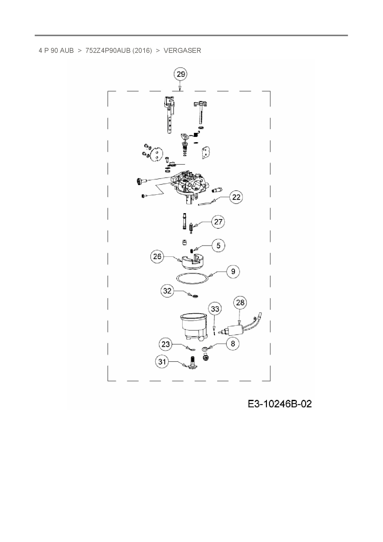 Download Ersatzteil-Zeichnung MTD-Motoren 4 P 90 AUB Zeichnung Vergaser (PDF-Format)