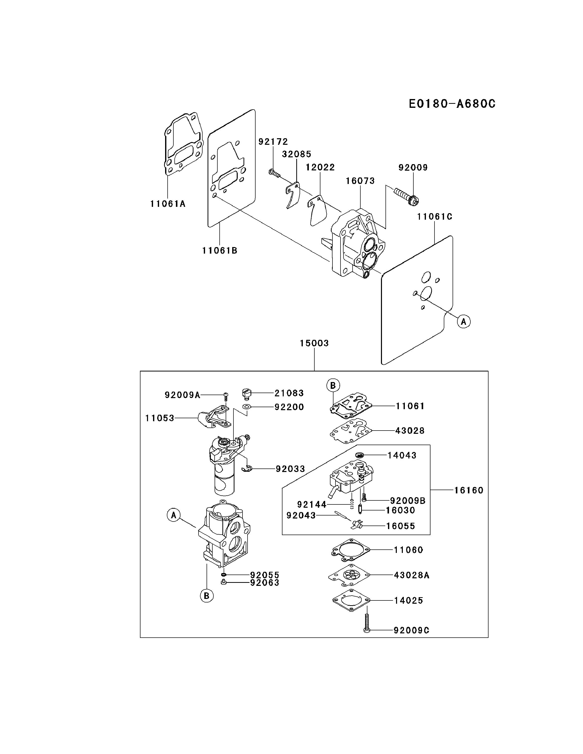 Hier finden Sie alle Ersatzteile von Kawasaki Laubbläser HG650A-AS50 (KRB650B) aus der Zeichnung Vergaser:
