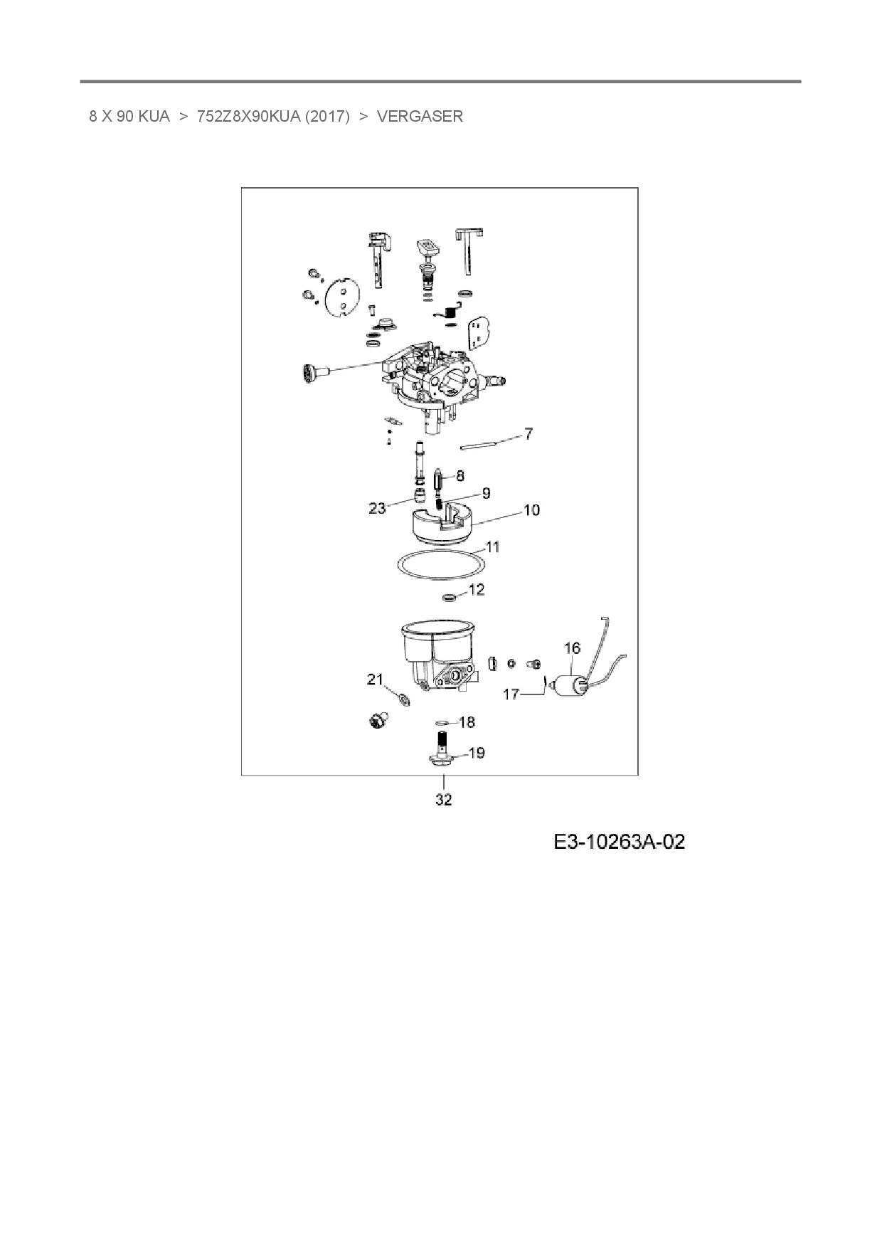 Ersatzteile für Vertikal MTD-Motoren 8 X 90 KUA aus der Zeichnung Vergaser: