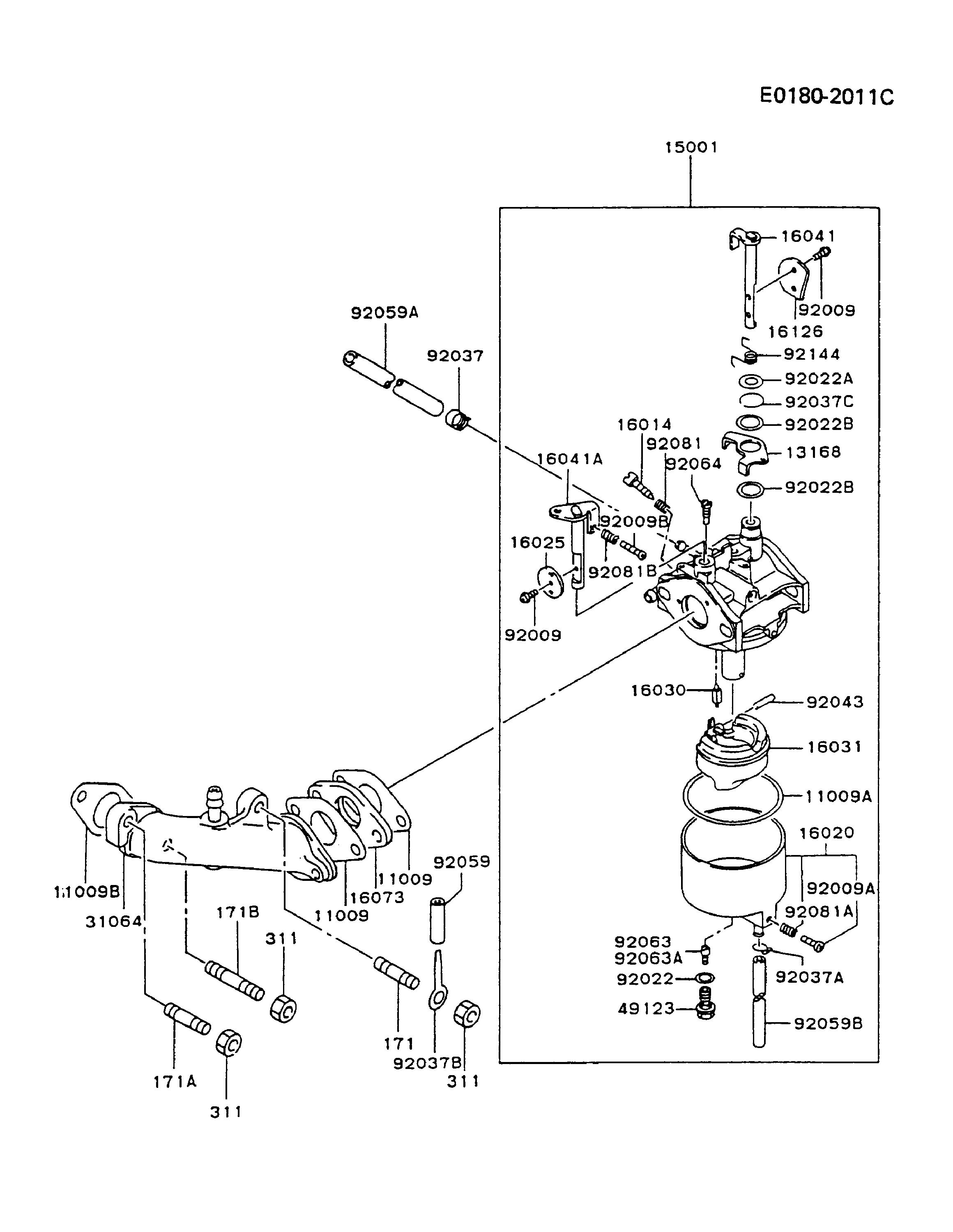 Hier finden Sie alle Ersatzteile von Kawasaki Generatoren GD550A-AV00 (GD550A) aus der Zeichnung Vergaser:
