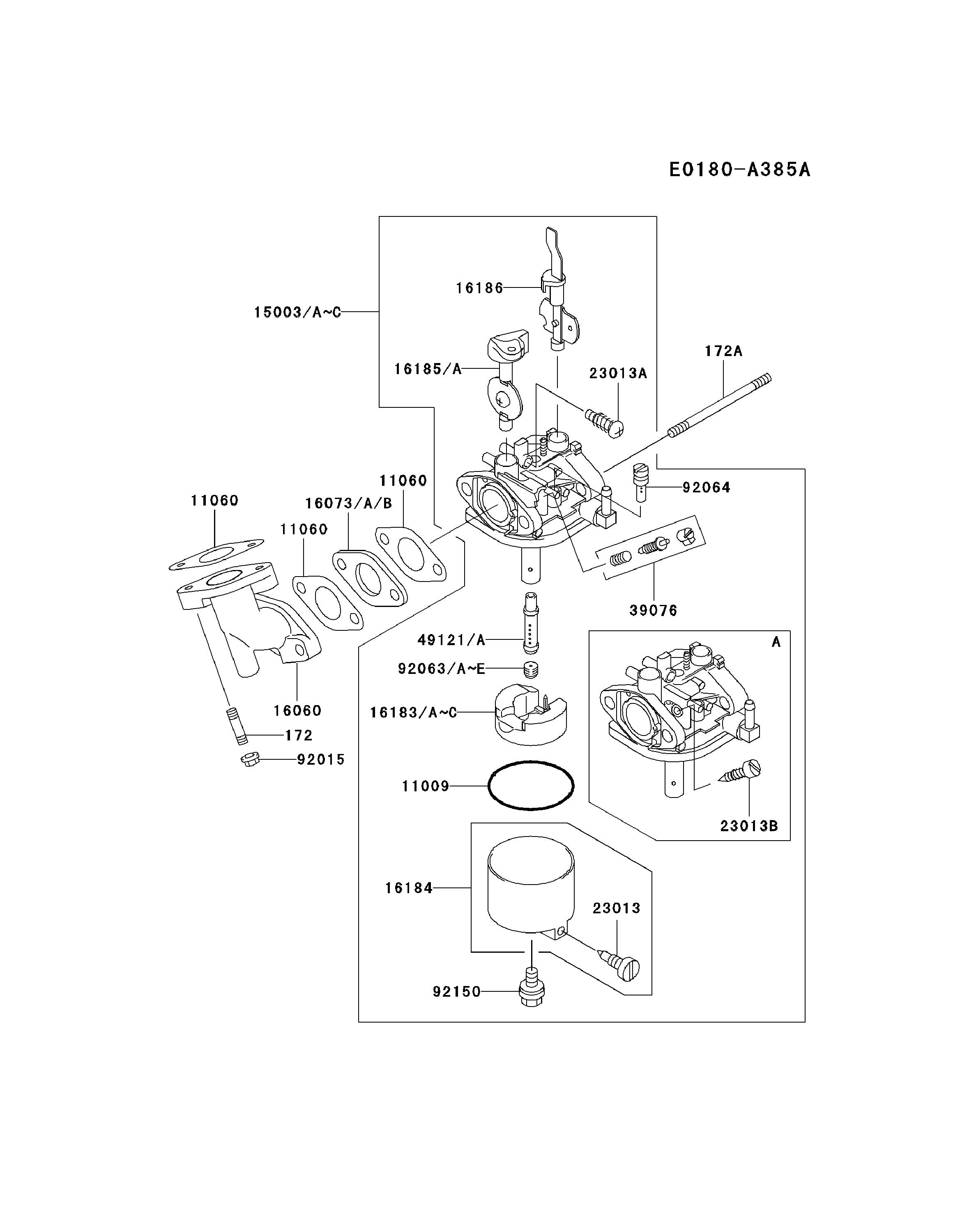 Hier finden Sie alle Ersatzteile von Kawasaki Generatoren GEW90A-AS55 (GE2900A) aus der Zeichnung Vergaser: