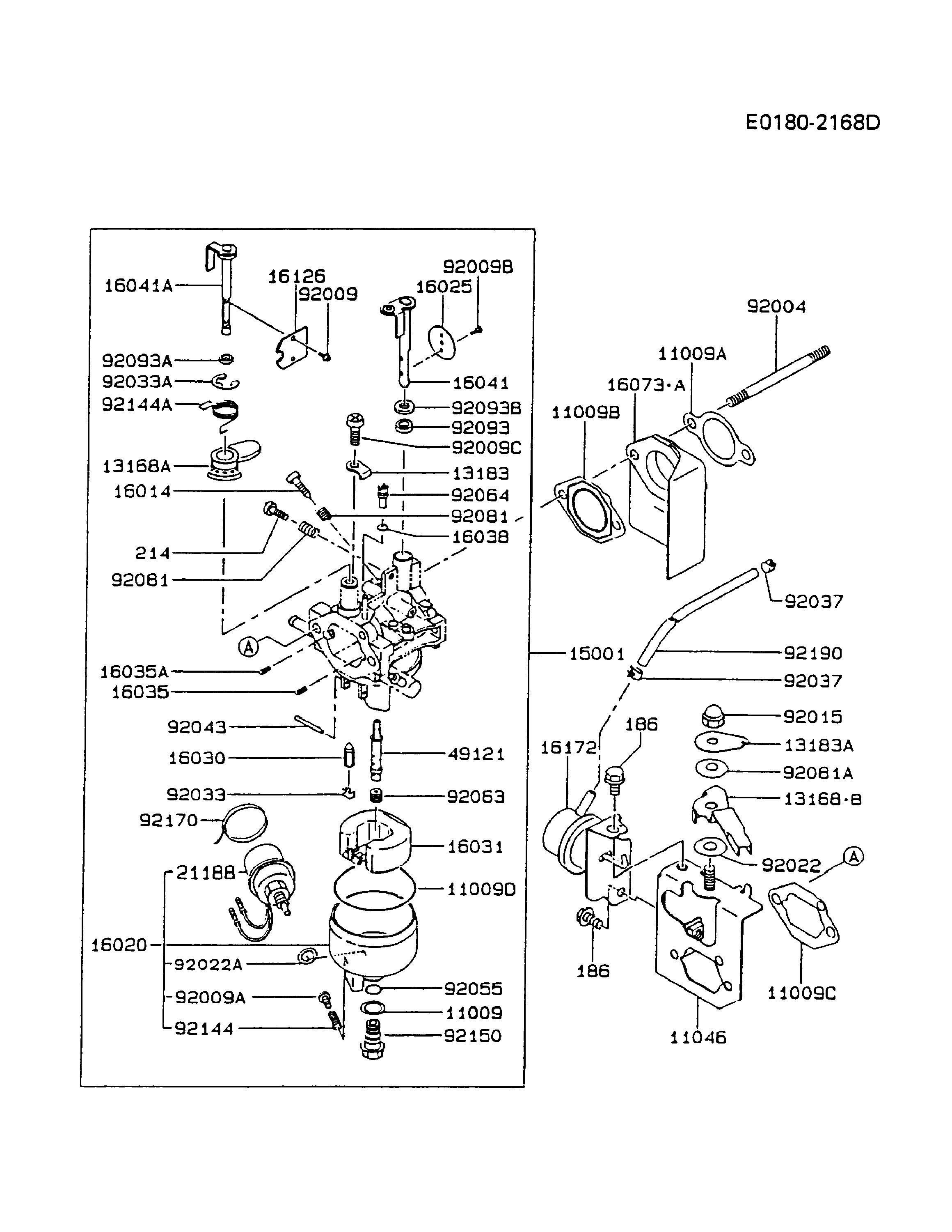 Hier finden Sie alle Ersatzteile von Kawasaki Generatoren GER50A-AA54 (GE4500A) aus der Zeichnung Vergaser:
