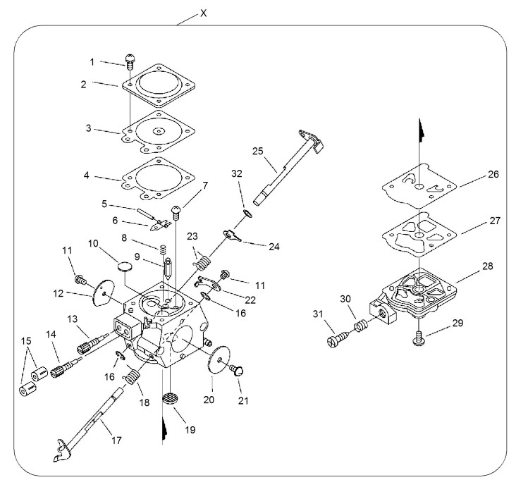 Zeichnung von ECHO Motorsägen CS-270WES CS-270WES bis S.-Nr: 36006130 Vergaser: