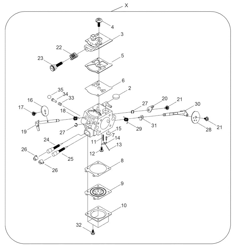 Zeichnung von ECHO Motorsägen CS-280WESC CS-280WESC bis S.-Nr.: 37006105 Vergaser: