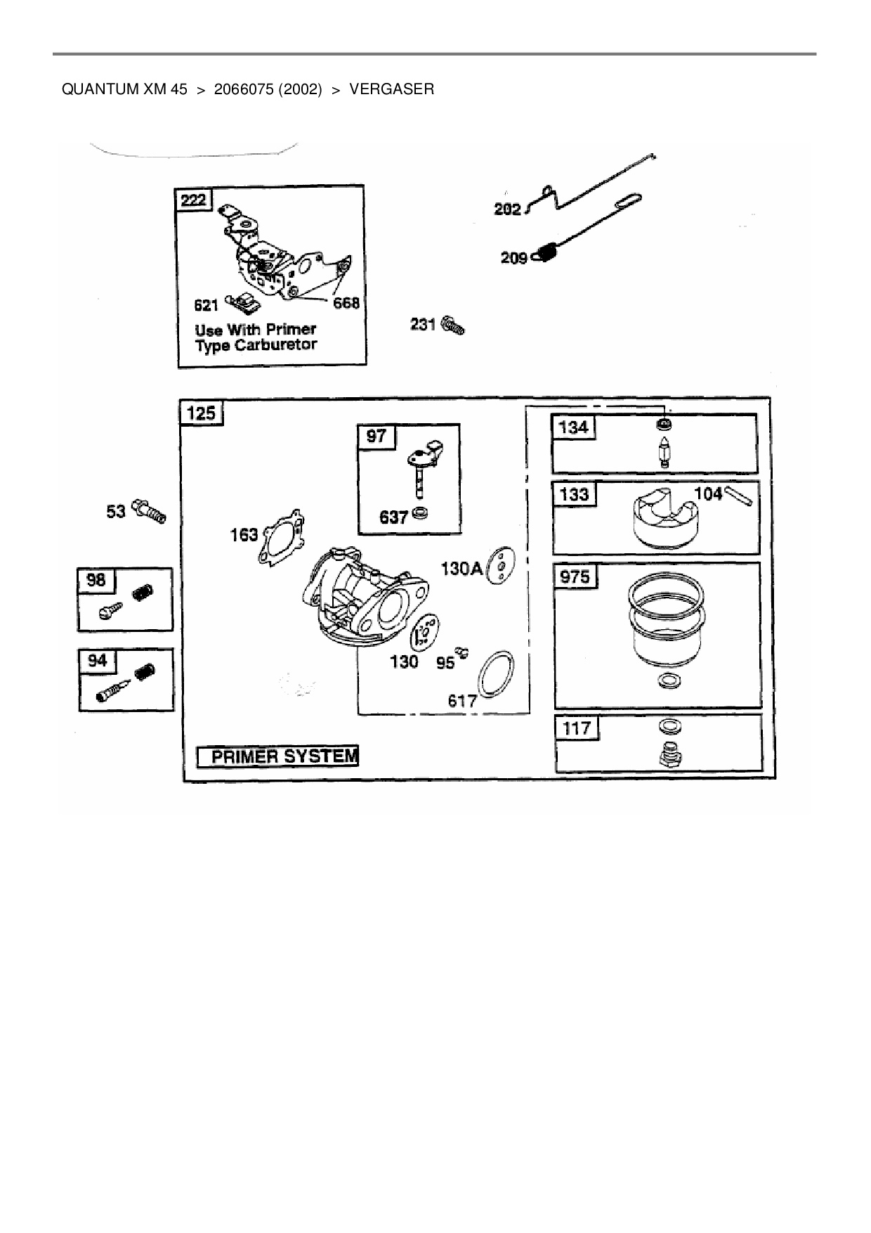 Ersatzteile für Benzinmotor Briggs&Stratton Wolf-Garten Quantum XM 45 aus der Zeichnung Vergaser: