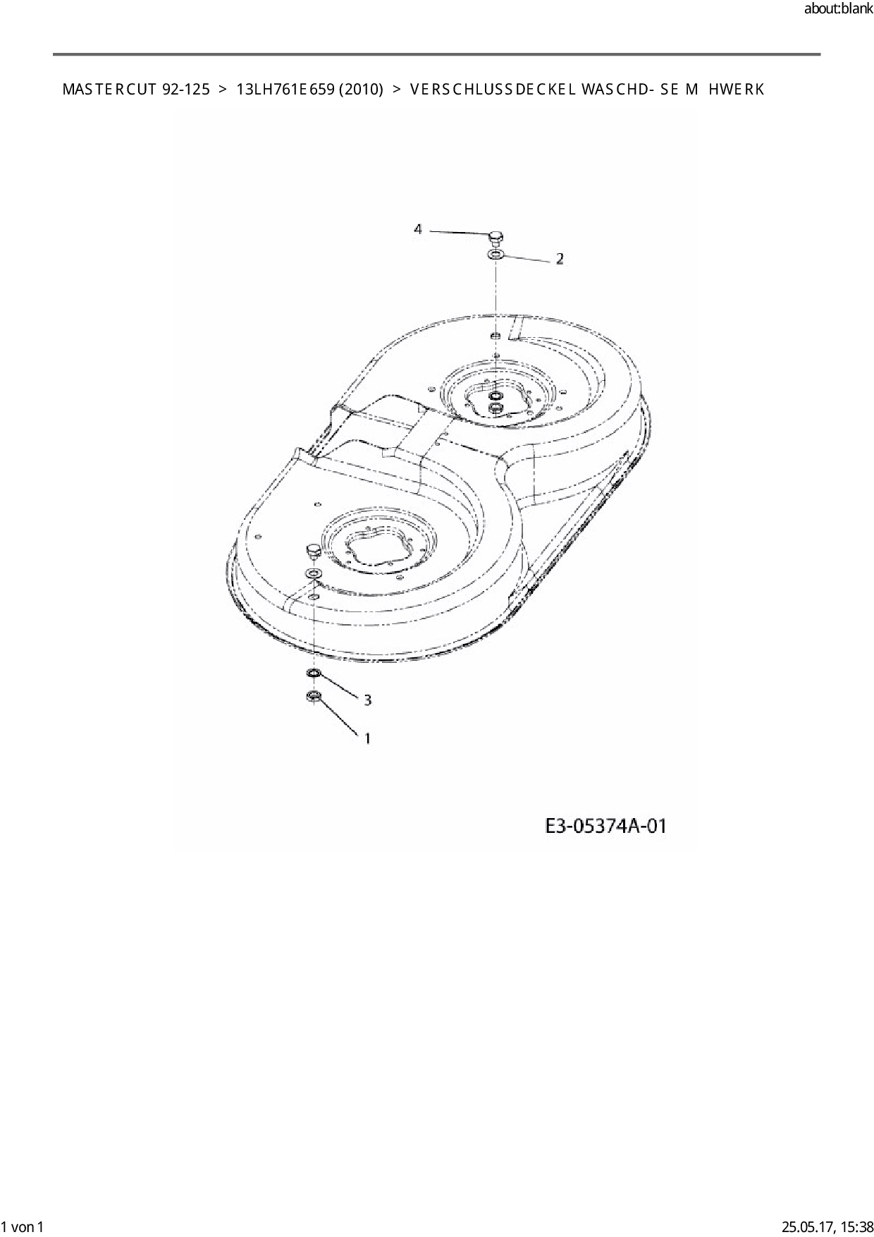 Ersatzteile für Rasentraktor Mastercut Mastercut 92-125 aus der Zeichnung Verschlussdeckel Waschdüse Mähwerk: