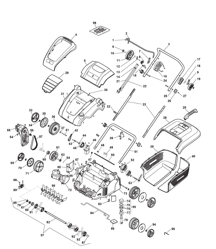 Zeichnungen von Alpina Vertikutierer SC 1.5 E mit Geräte Nr. 290002150/14 ab Baujahr 2017