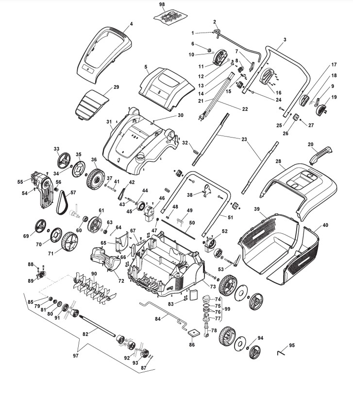Zeichnungen von Alpina Vertikutierer ASC 1.5 E mit Geräte Nr. 290002154/A20 ab Baujahr 2020