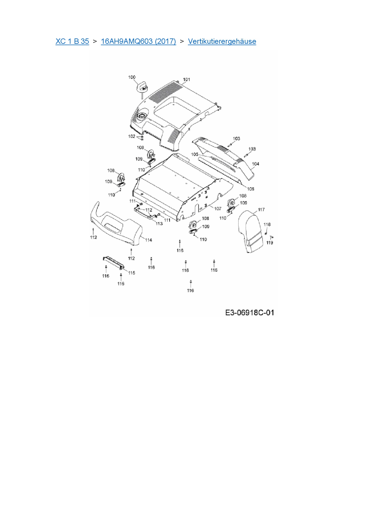 Ersatzteile für Motorvertikutierer Cub Cadet XC 1 B 35 aus der Zeichnung Vertikutierergehäuse: