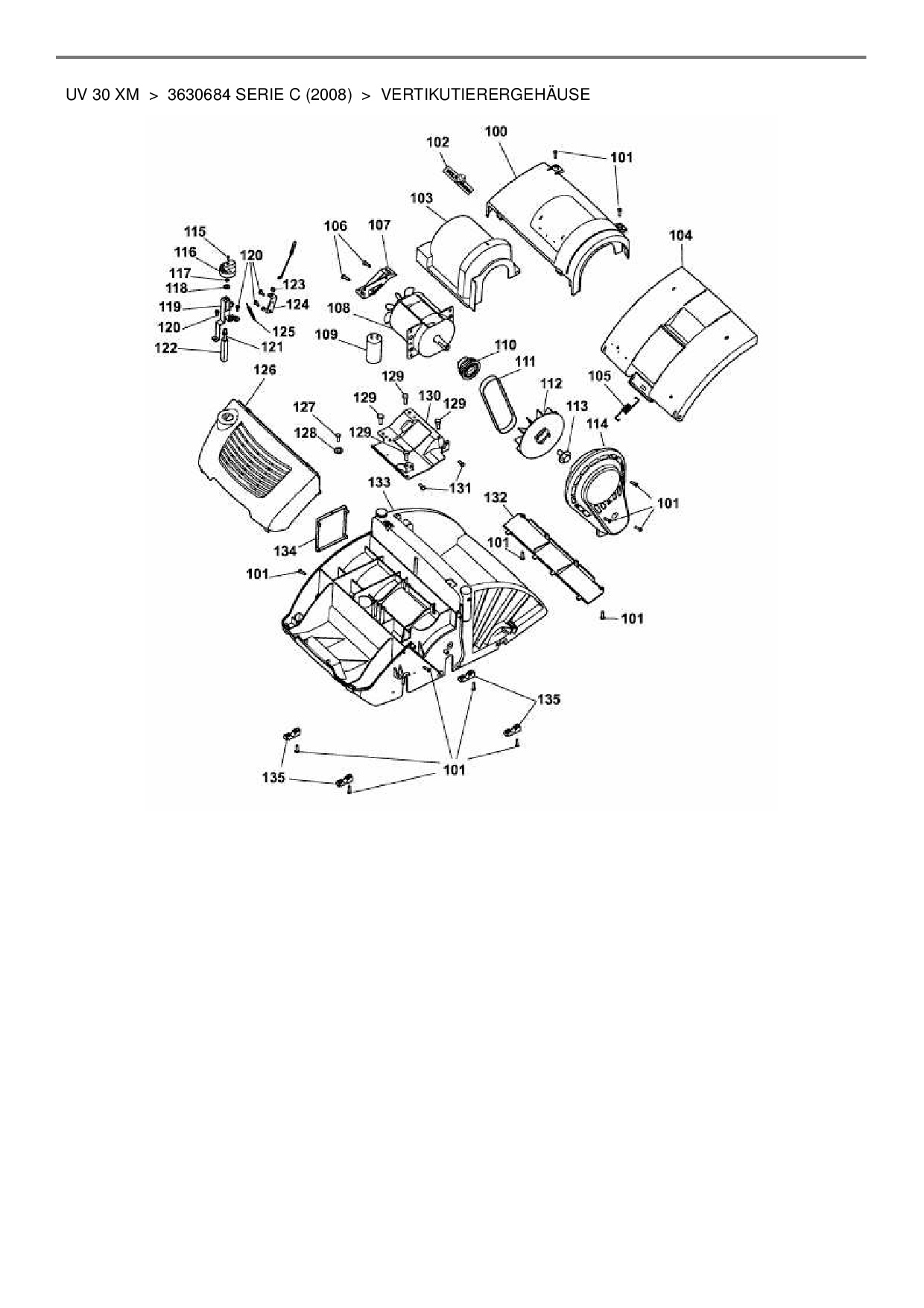 Ersatzteile für Elektrovertikutierer Wolf-Garten UV 30 XM aus der Zeichnung Vertikutierergehäuse: