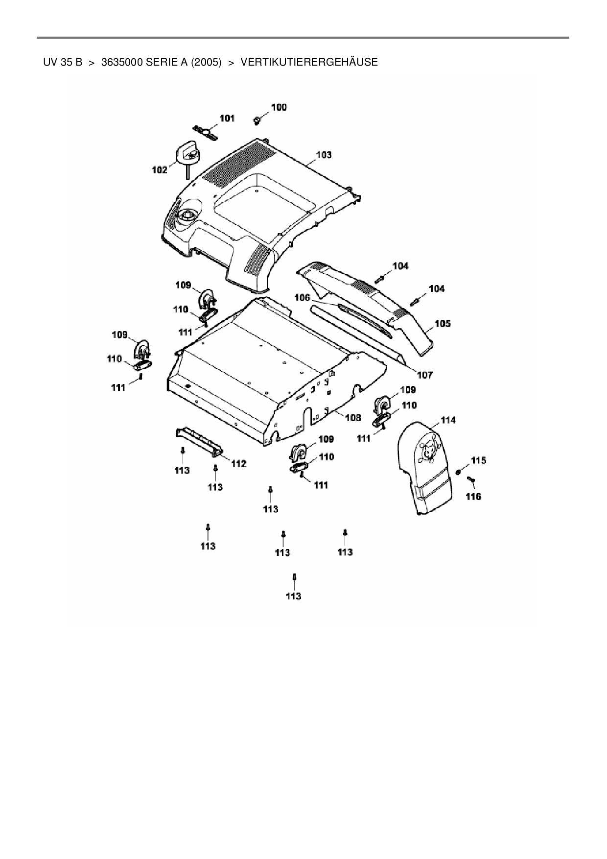 Zeichnung für Wolf-Garten Motorvertikutierer UV 35 B mit der Geräte-Artikelnr. 3635000 Serie A ab Baujahr 2005: