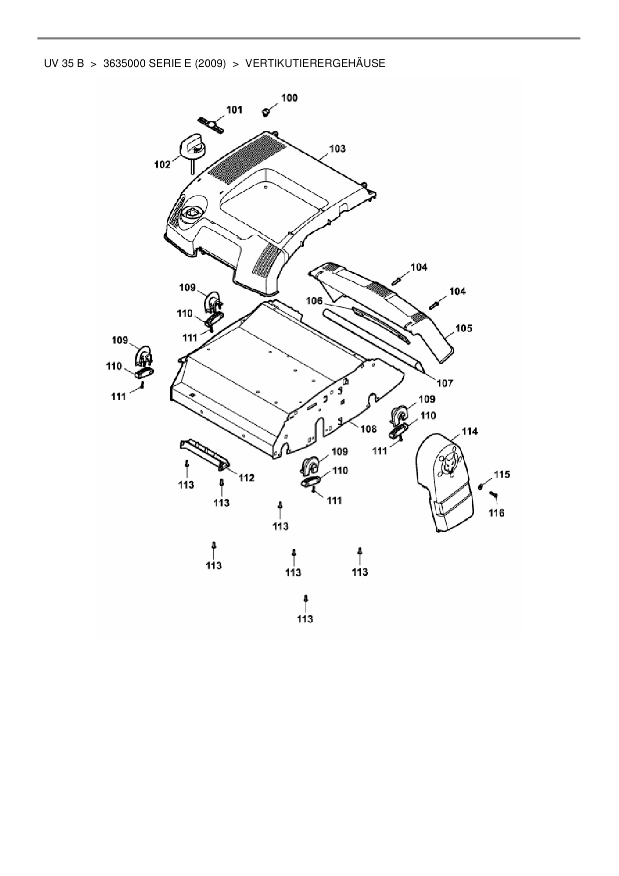Zeichnung für Wolf-Garten Motorvertikutierer UV 35 B mit der Geräte-Artikelnr. 3635000 Serie E ab Baujahr 2009: