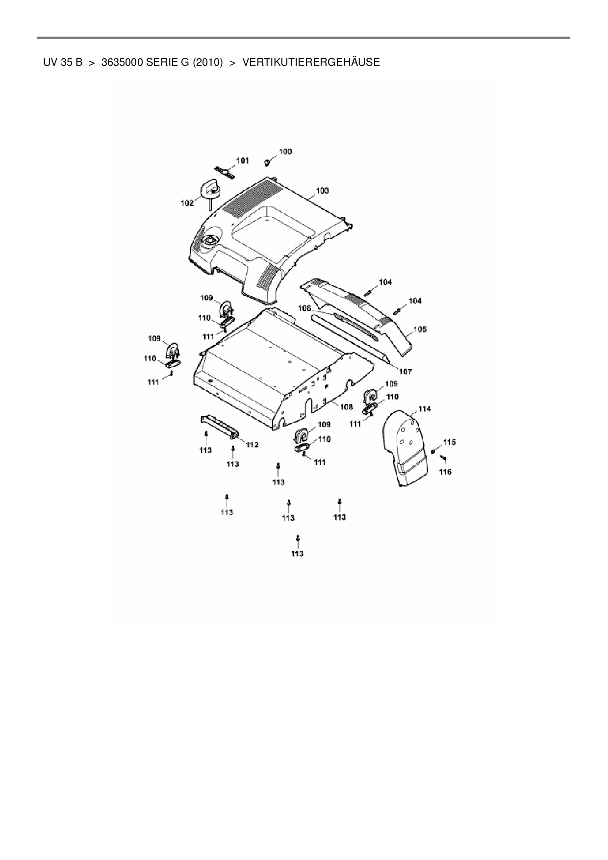 Zeichnung für Wolf-Garten Motorvertikutierer UV 35 B mit der Geräte-Artikelnr. 3635000 Serie G ab Baujahr 2010: