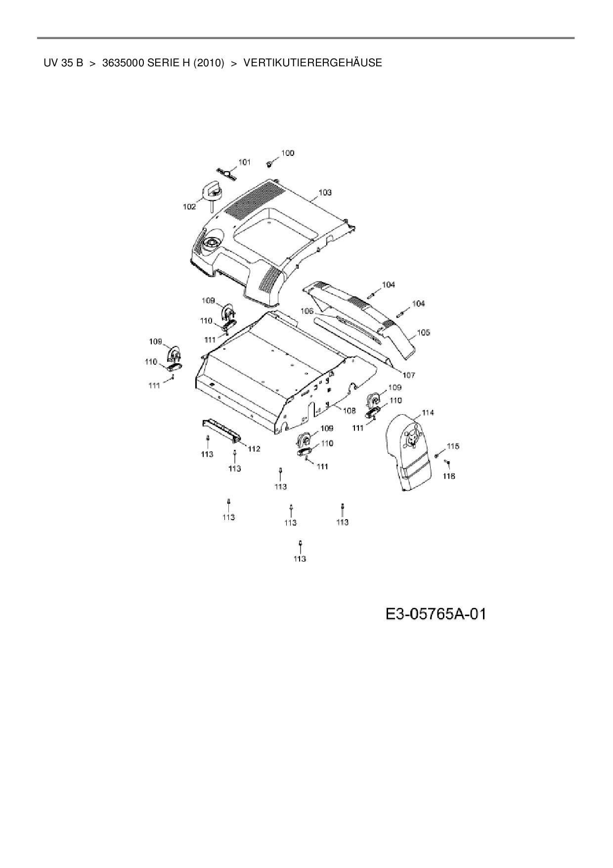 Zeichnung für Wolf-Garten Motorvertikutierer UV 35 B mit der Geräte-Artikelnr. 3635000 Serie H ab Baujahr 2010: