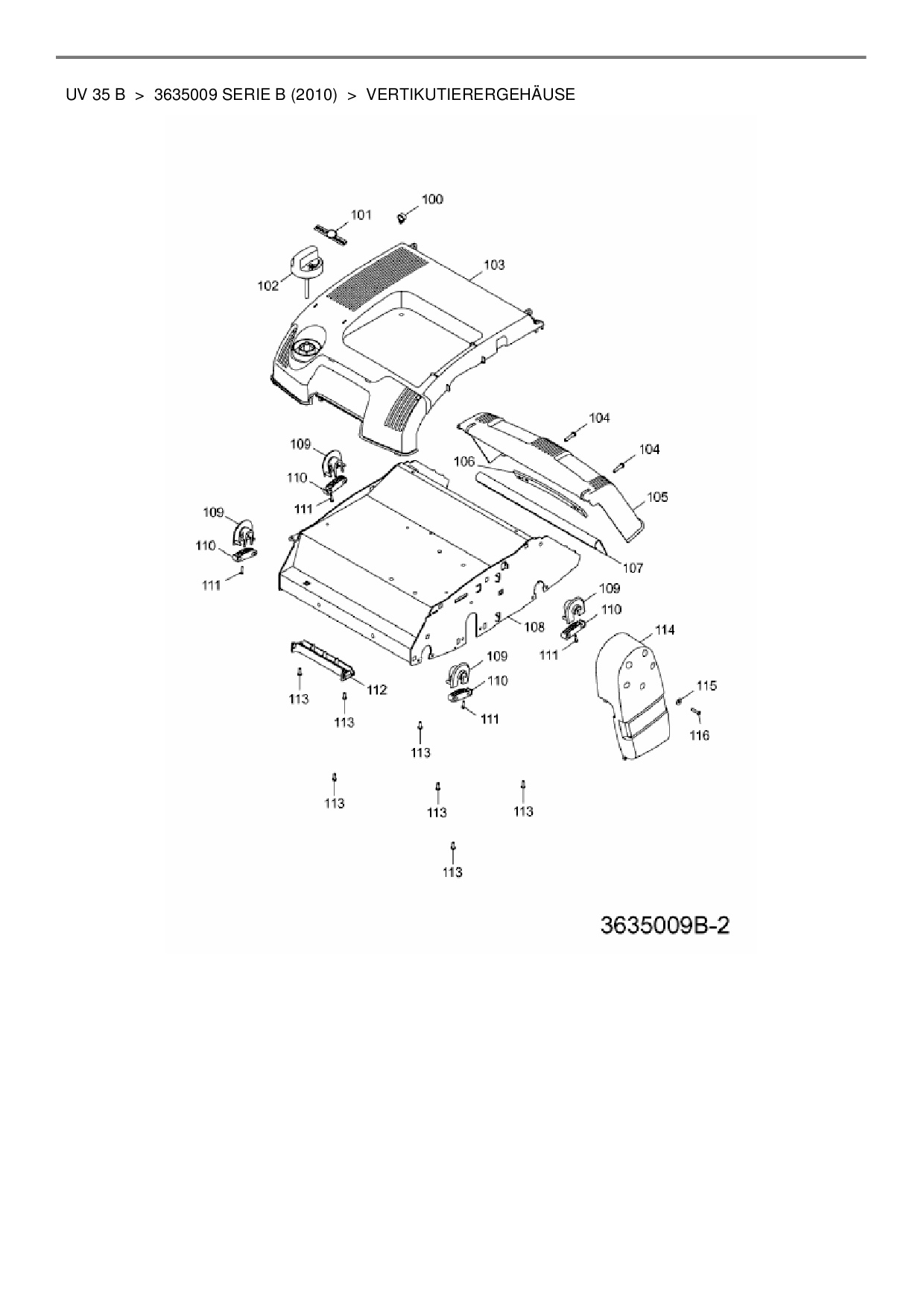 Ersatzteile für Motorvertikutierer Wolf-Garten UV 35 B aus der Zeichnung Vertikutierergehäuse: