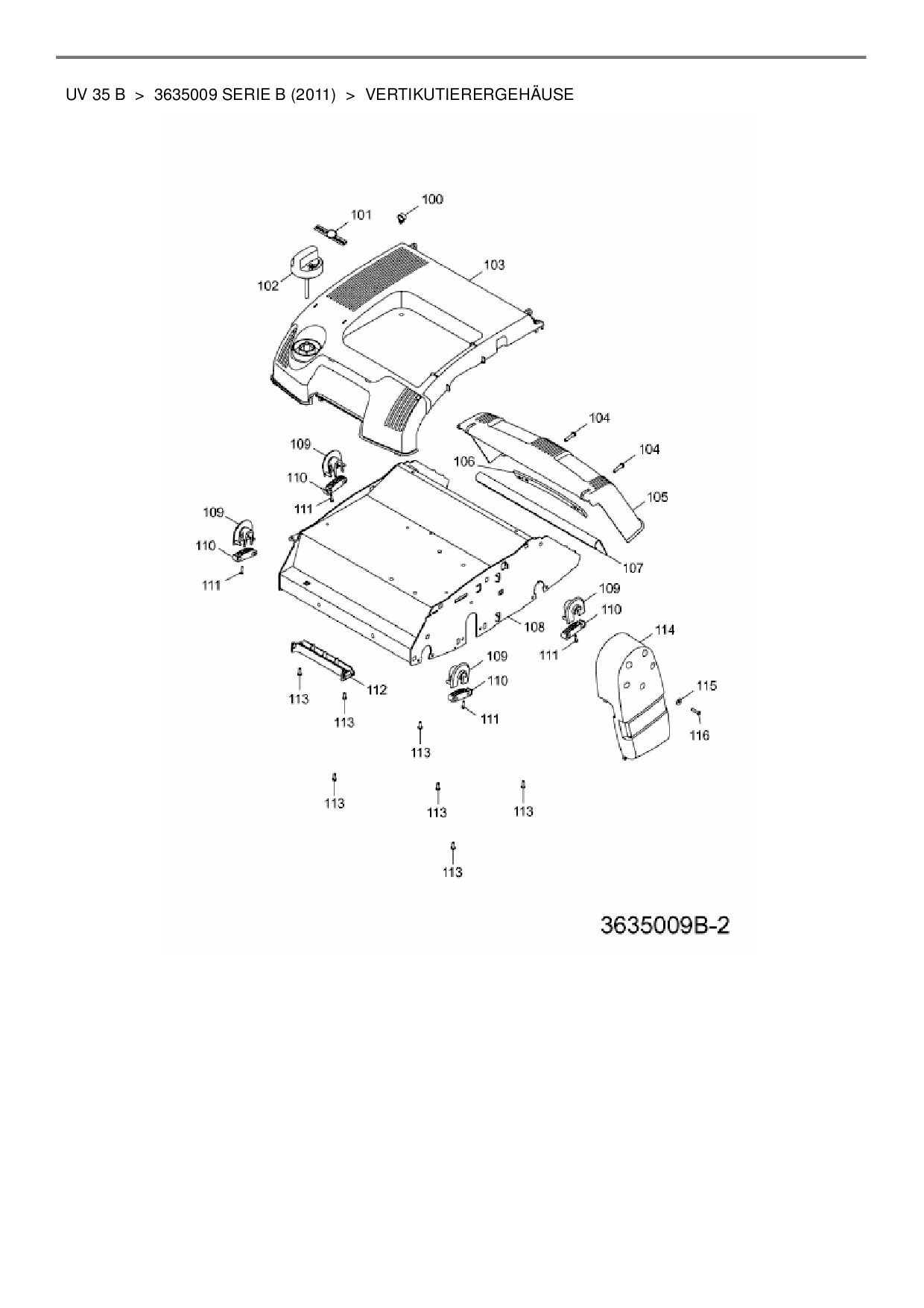 Ersatzteile für Motorvertikutierer Wolf-Garten UV 35 B aus der Zeichnung Vertikutierergehäuse: