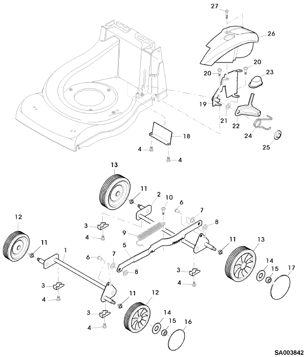 Zeichnung Sabo Rasenmäher Elektro-Rasenmäher 36-EL EDV-NR.SA112 Vorder- Hinterachse:
