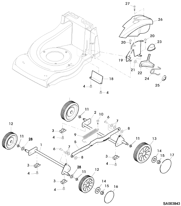 Zeichnung Sabo Rasenmäher Elektro-Rasenmäher 36-EL EDV-NR.SA752 Vorder- Hinterachse: