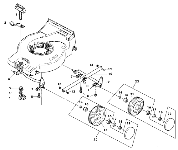 Zeichnung Sabo Rasenmäher Akku Rasenmäher 43-AKKU EDV-NR. SA393 Vorder- Hinterachse: