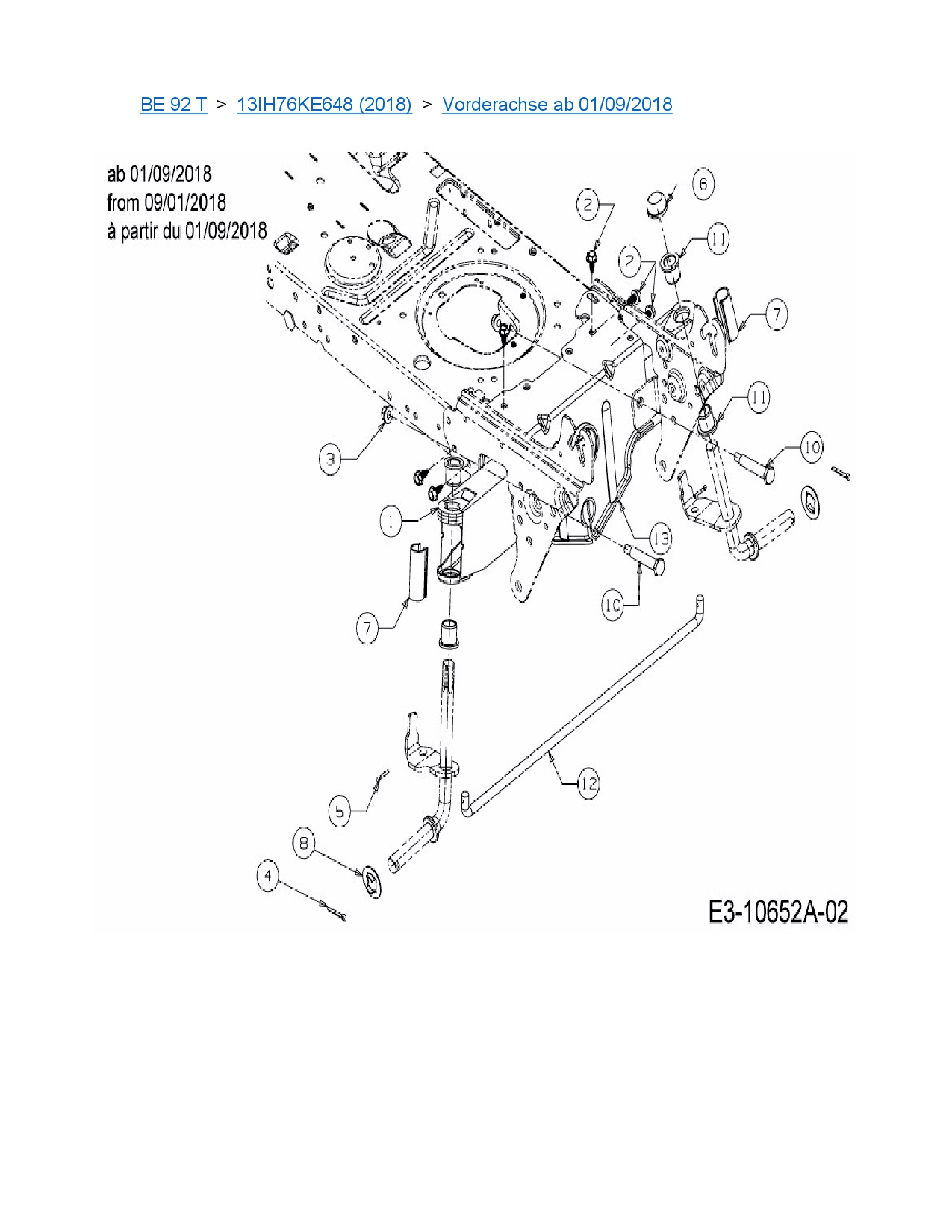 Ersatzteile für Rasentraktor MTD BE 92 T aus der Zeichnung Vorderachse ab 01/09/2018: