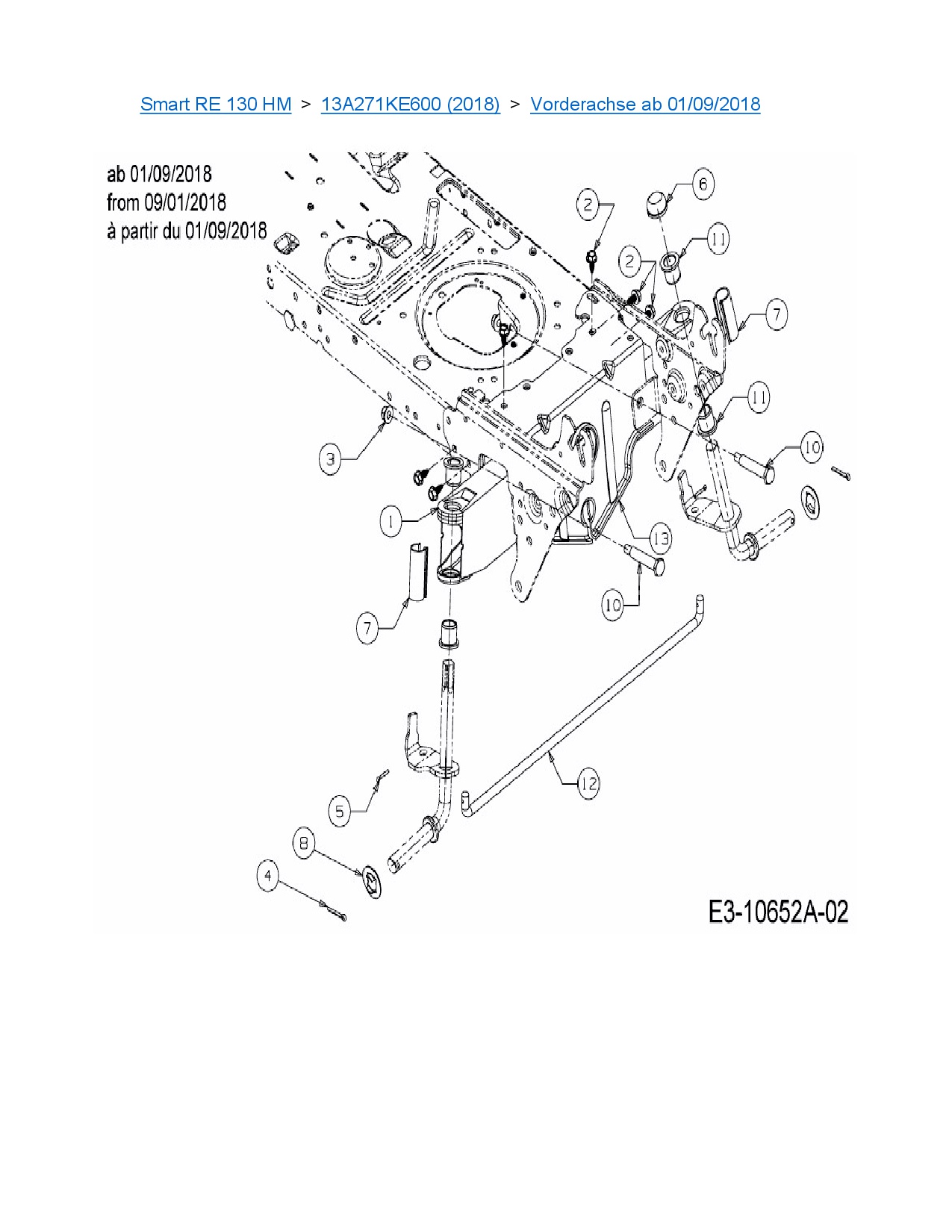 Ersatzteile für Rasentraktor MTD Smart RE 130 HM aus der Zeichnung Vorderachse ab 01/09/2018: