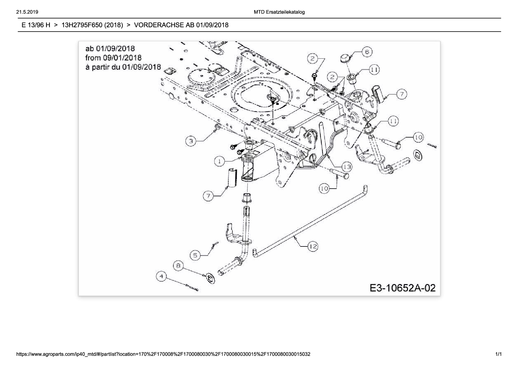 Ersatzteile für Rasentraktor Wolf-Garten Expert E 13/96 H aus der Zeichnung Vorderachse ab 01/09/2018: