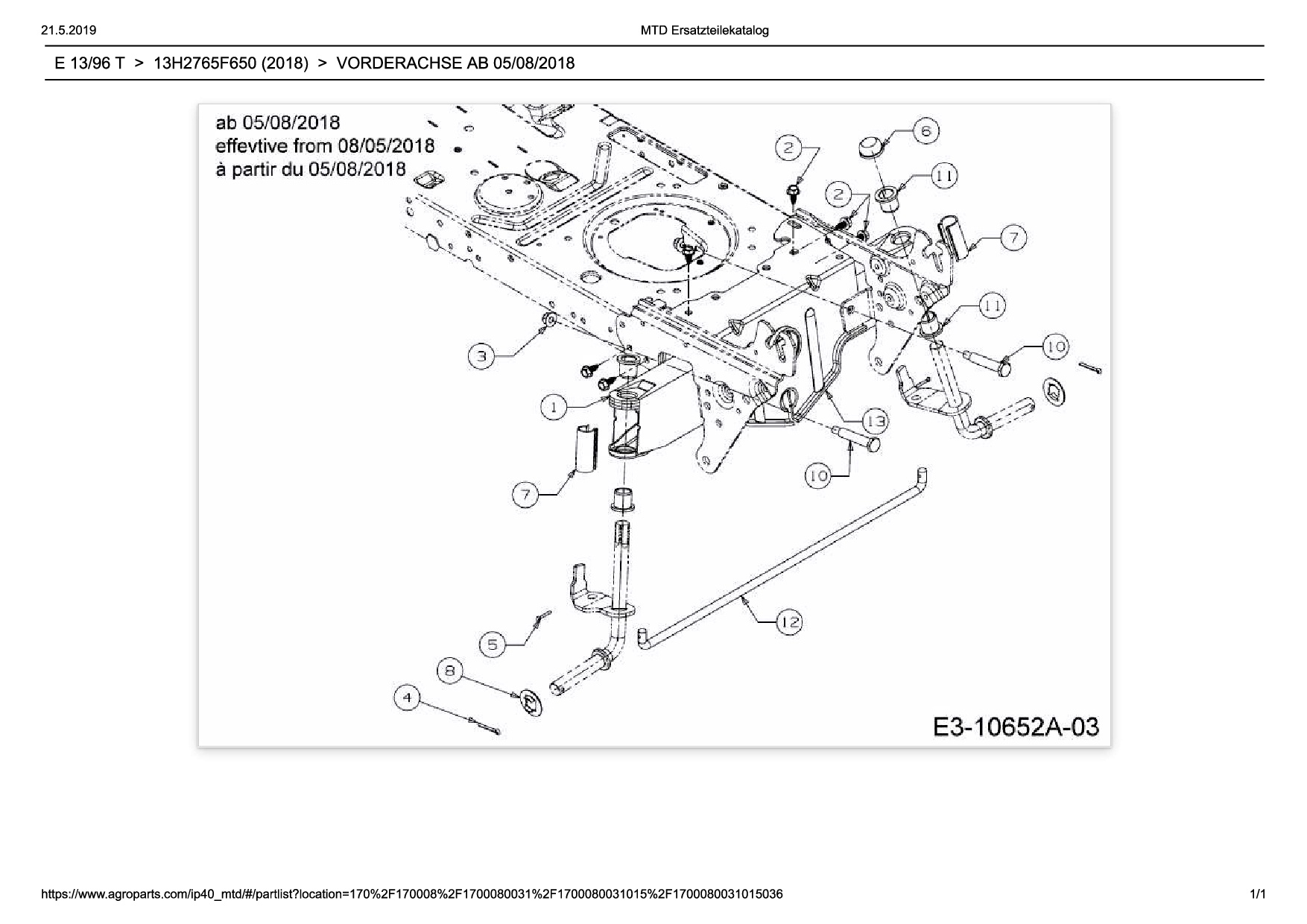 Ersatzteile für Rasentraktor Wolf-Garten Expert E 13/96 T aus der Zeichnung Vorderachse ab 05/08/2018: