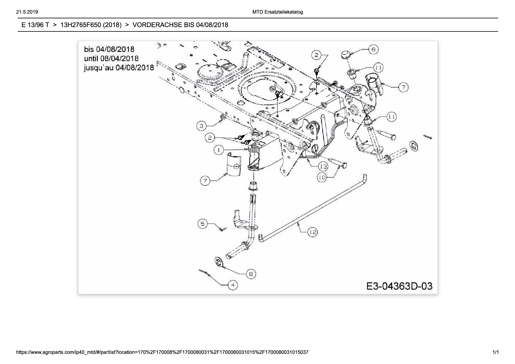 Ersatzteile für Rasentraktor Wolf-Garten Expert E 13/96 T aus der Zeichnung Vorderachse bis 04/08/2018: