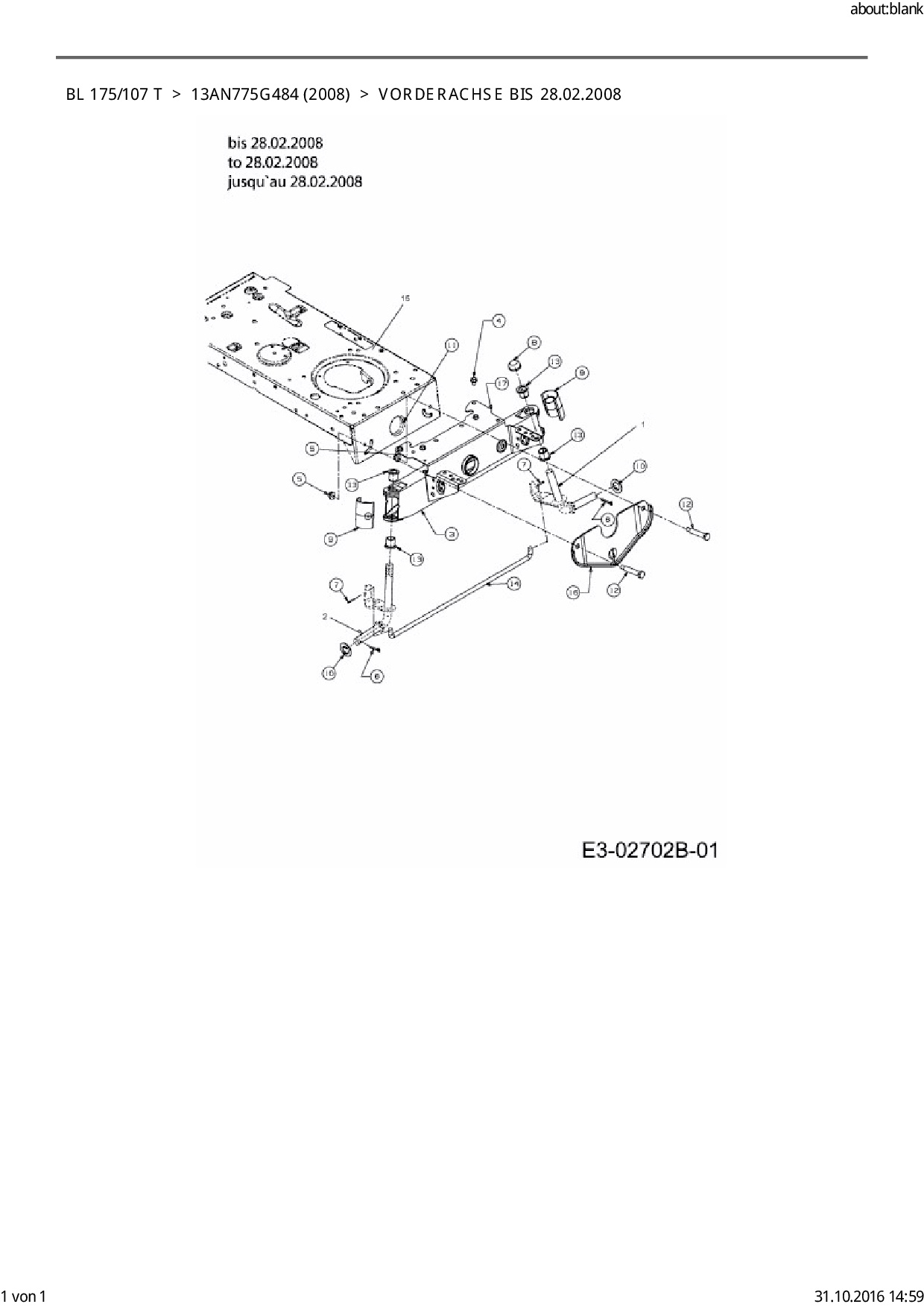Ersatzteile für Rasentraktor Bolens BL 175/107 T aus der Zeichnung Vorderachse bis 28.02.2008: