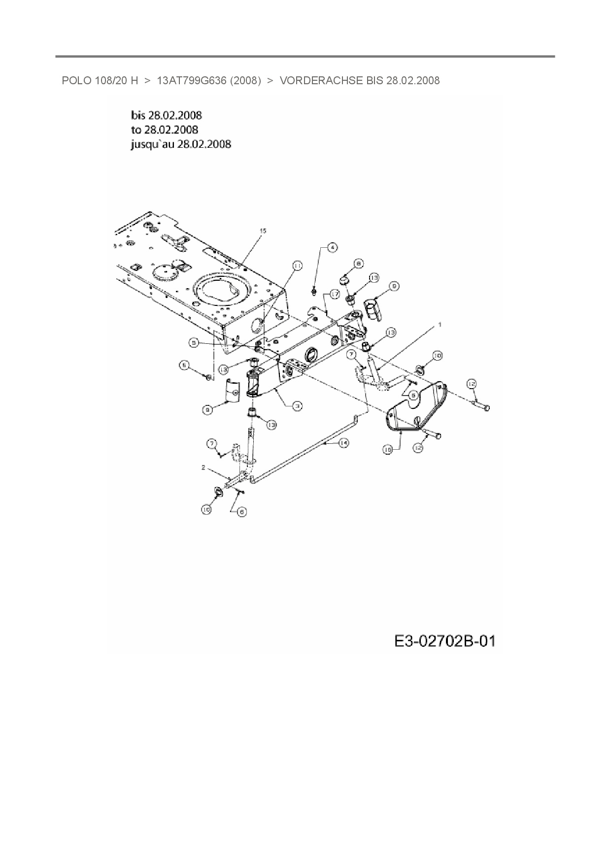 Ersatzteile für Rasentraktor Oleo-Mac Polo 108/20 H aus der Zeichnung Vorderachse bis 28.02.2008: