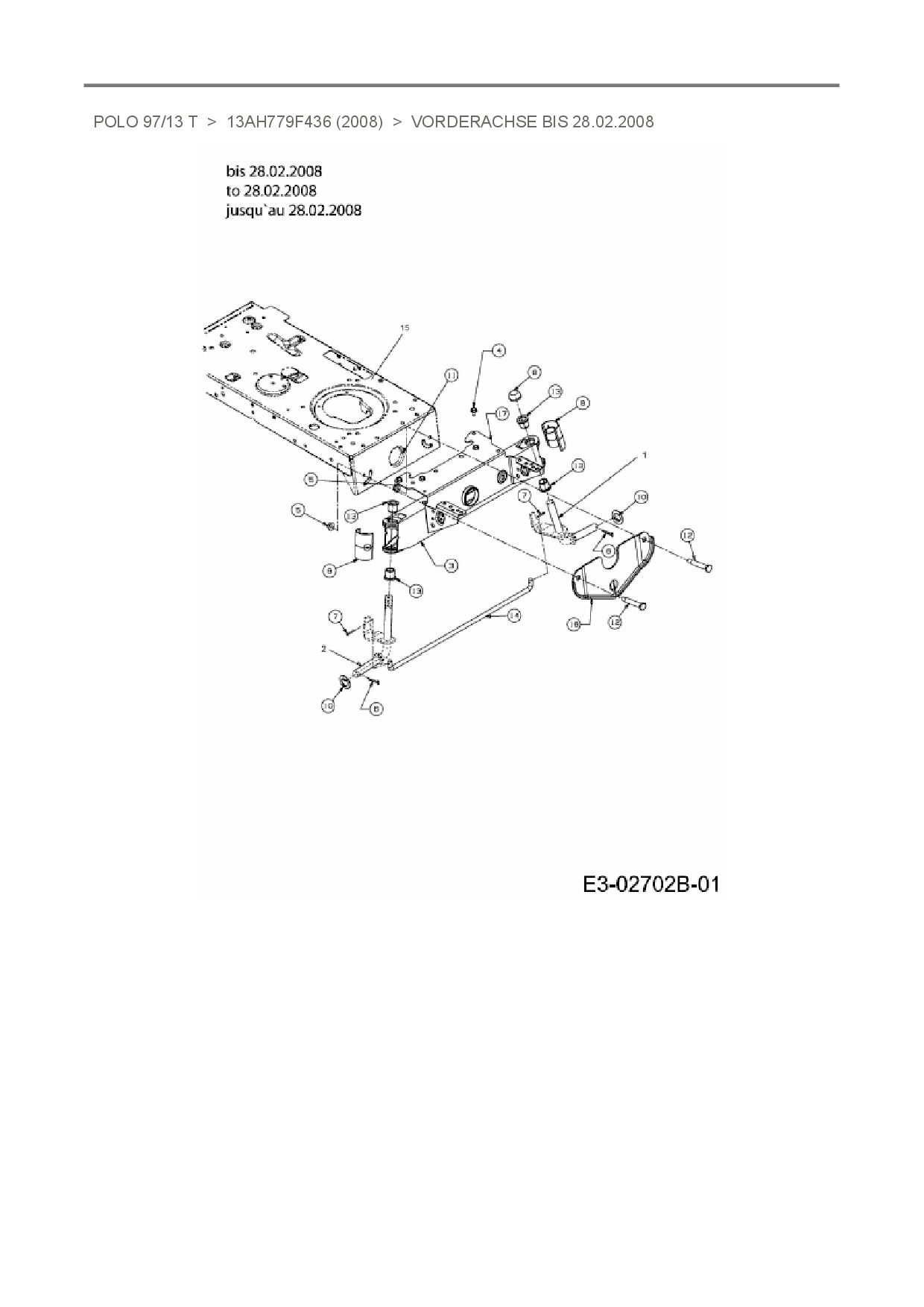 Ersatzteile für Rasentraktor Oleo-Mac Polo 97/13 T aus der Zeichnung Vorderachse bis 28.02.2008: