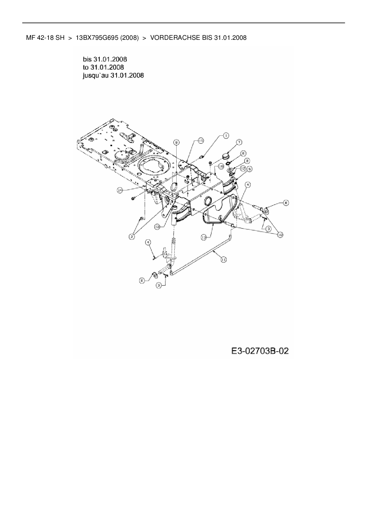 Ersatzteile für Rasentraktor Massey Ferguson MF 42-18 SH aus der Zeichnung Vorderachse bis 31.01.2008: