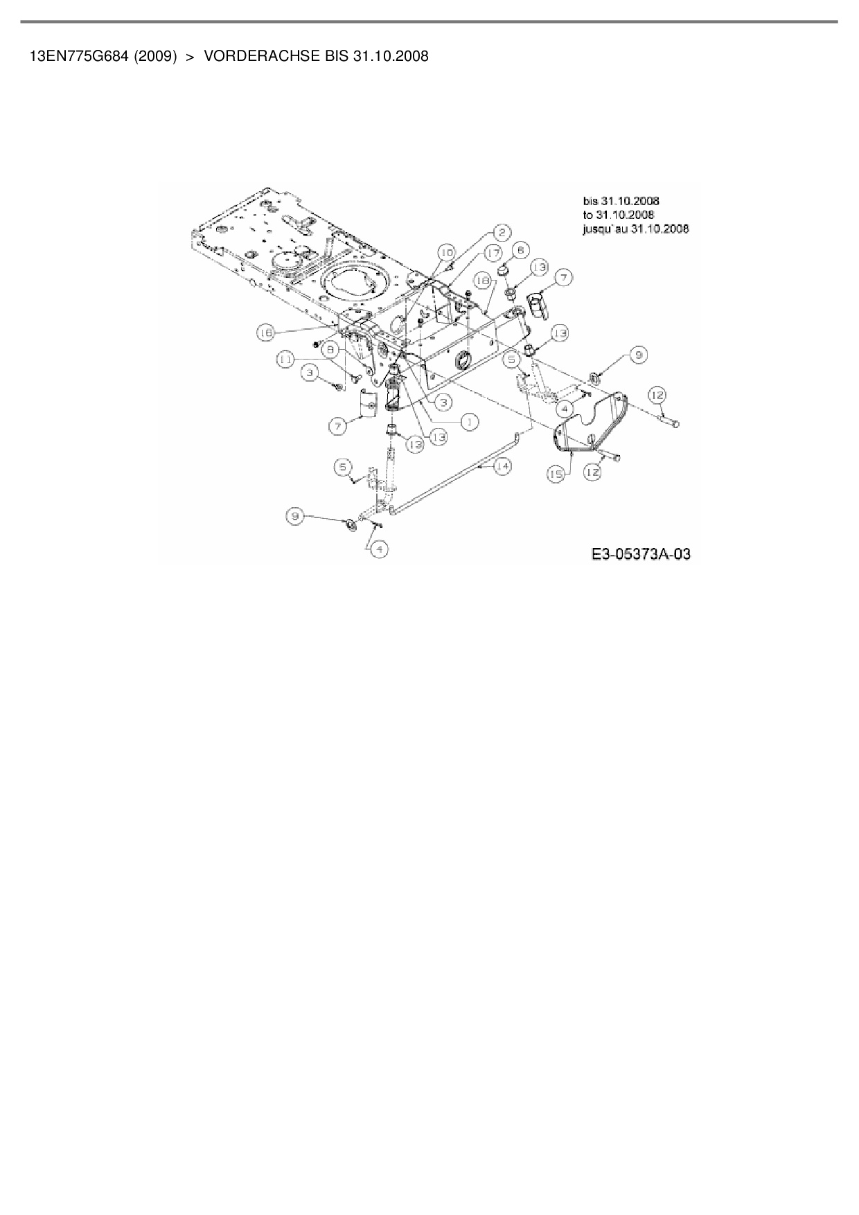 Ersatzteile für Rasentraktor Bolens BL 175/107 T aus der Zeichnung Vorderachse bis 31.10.2008: