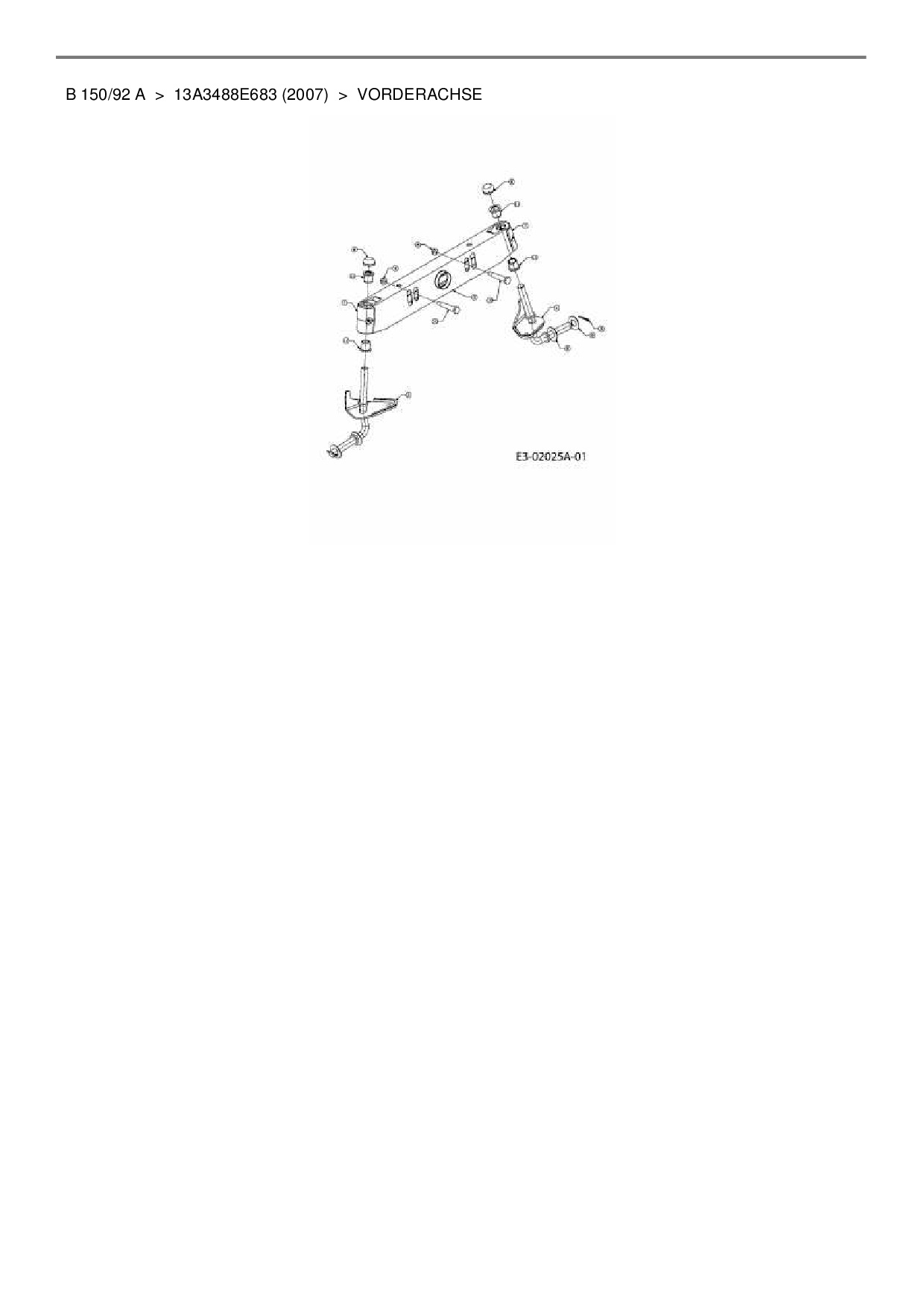 Ersatzteile für Rasentraktor Black-Line B 150/92 A aus der Zeichnung Vorderachse: