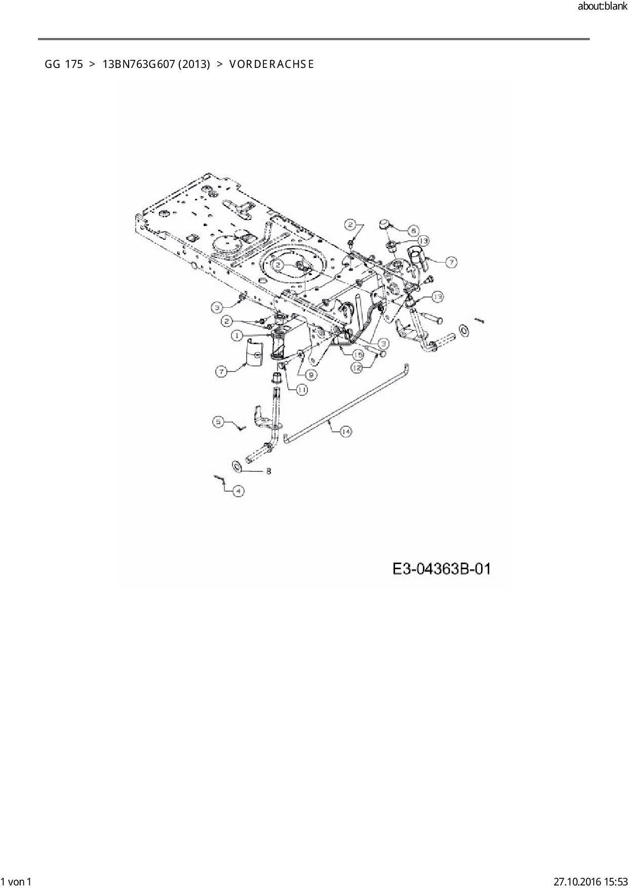 Ersatzteile für Rasentraktor Blisar GG 175 aus der Zeichnung Vorderachse: