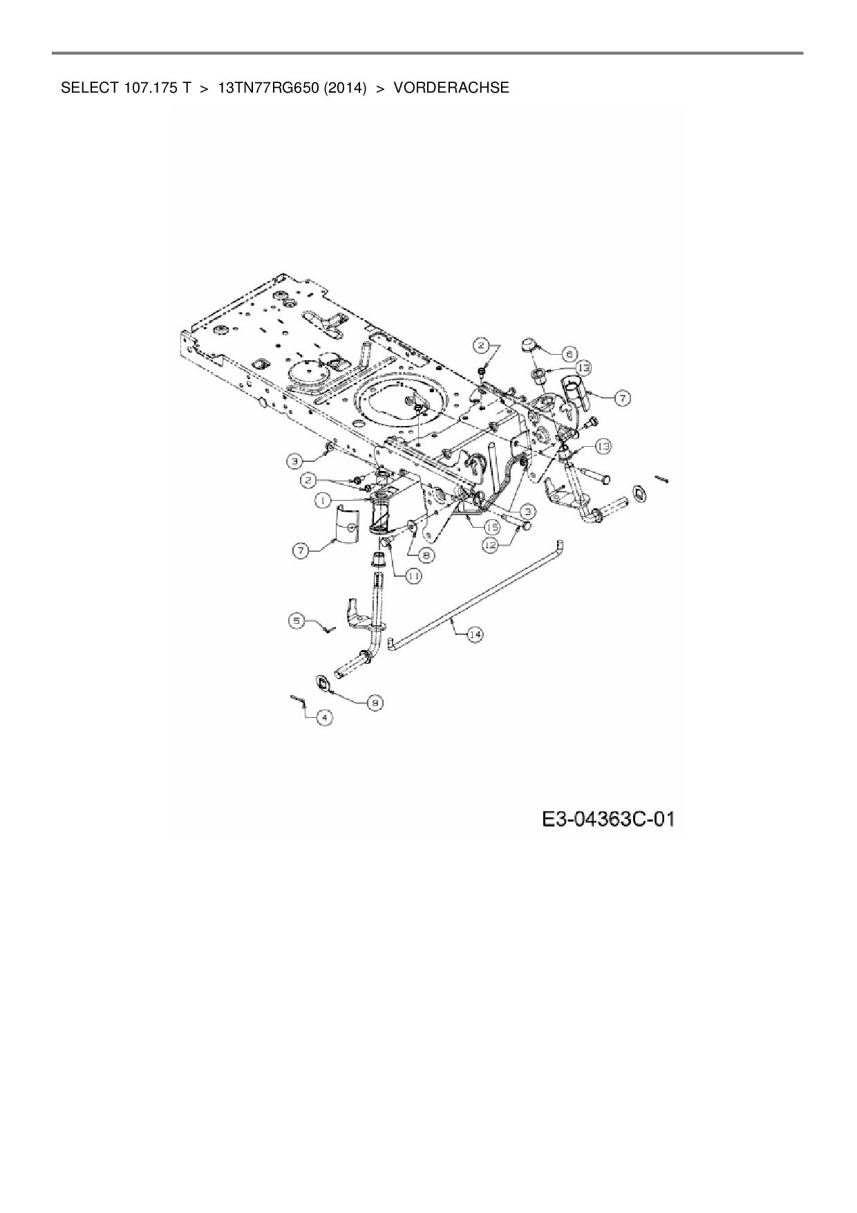 Ersatzteile für Rasentraktor Wolf-Garten Select 107.175 T aus der Zeichnung Vorderachse: