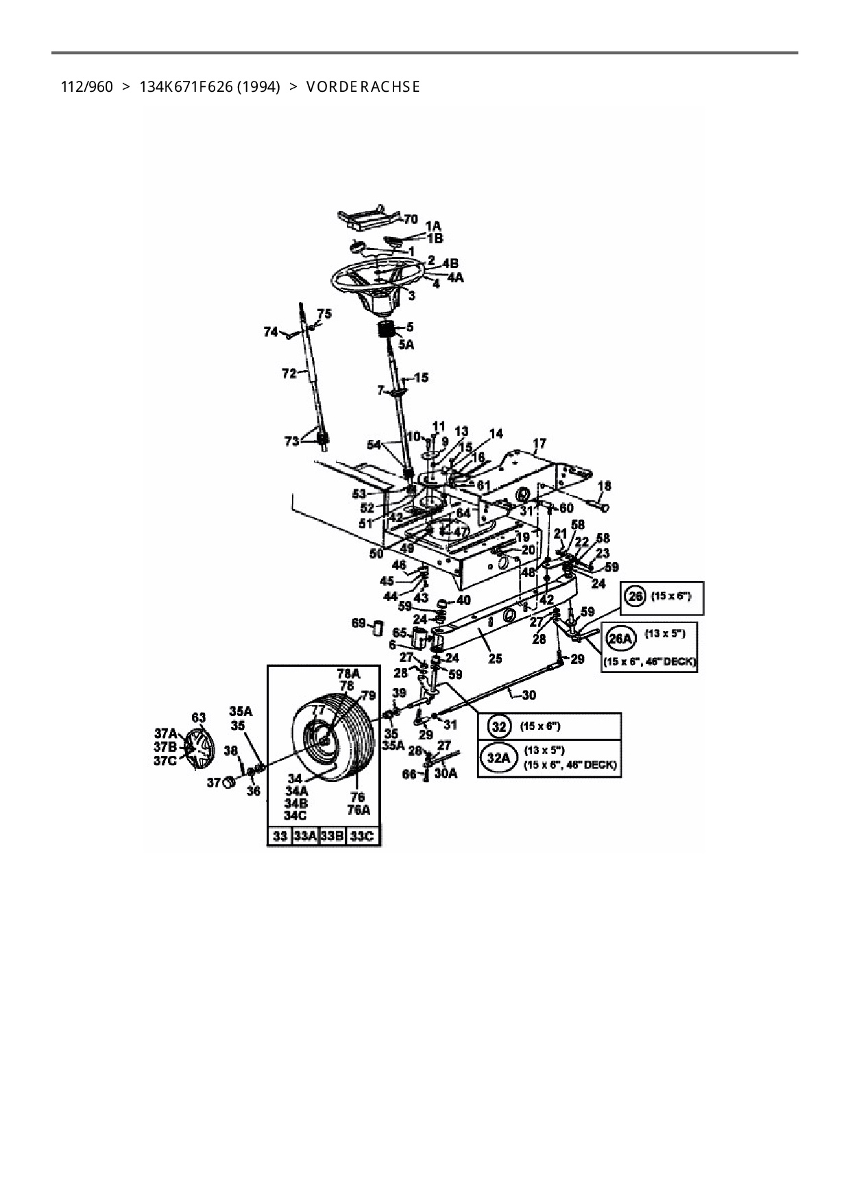 Ersatzteile für Rasentraktor Columbia 112/960 aus der Zeichnung Vorderachse: