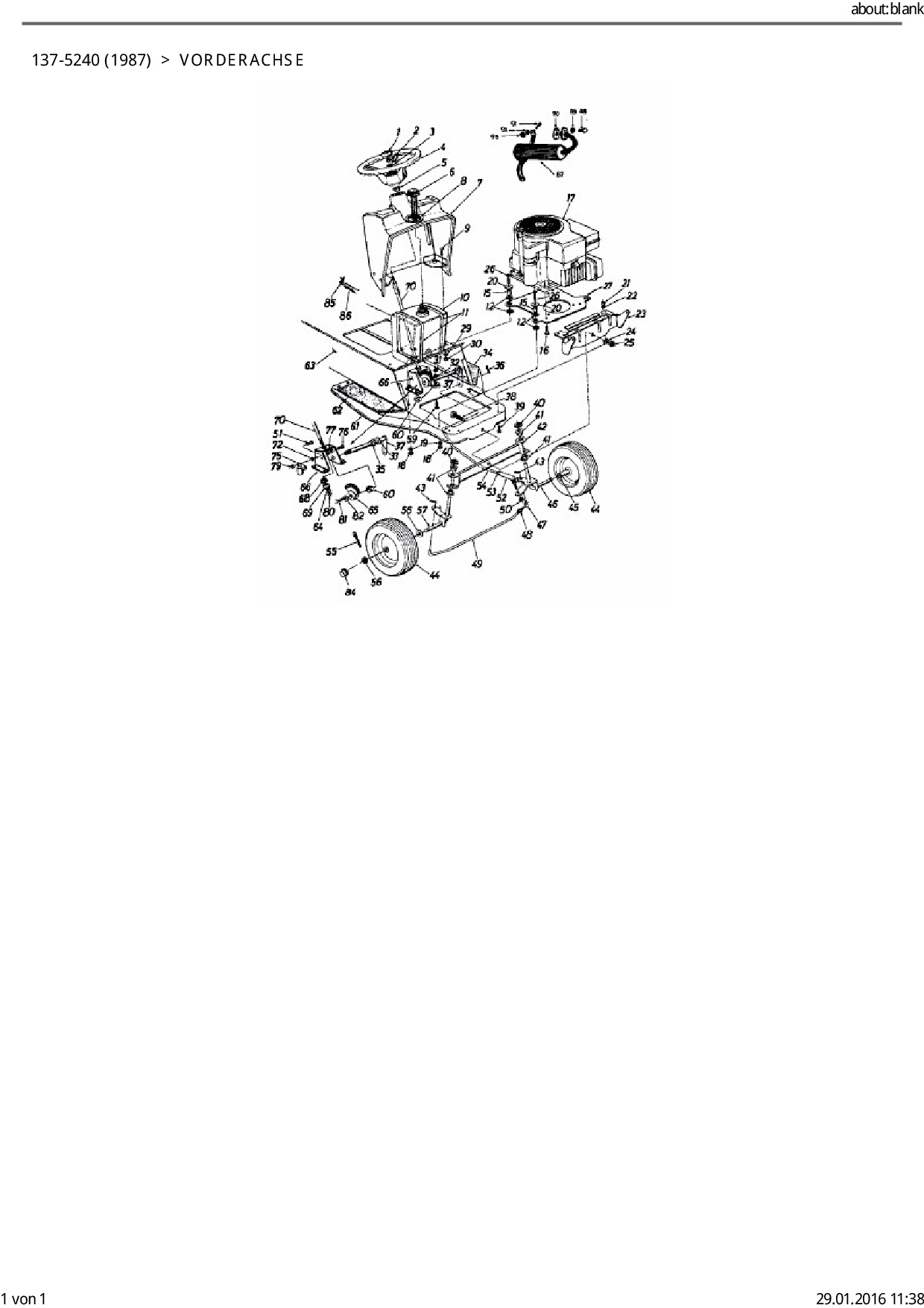 Zeichnung für Columbia Rasentraktor RD 11/660 mit der Geräte-Artikelnr. 137-5240 ab Baujahr 1987: