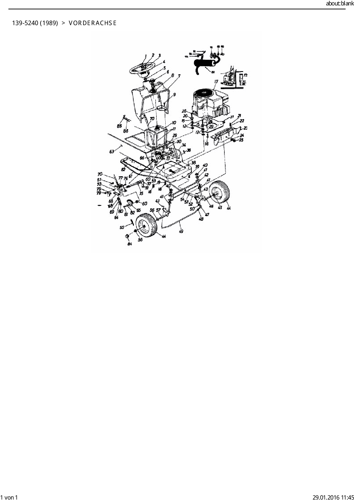 Zeichnung für Columbia Rasentraktor RD 11/660 mit der Geräte-Artikelnr. 139-5240 ab Baujahr 1989: